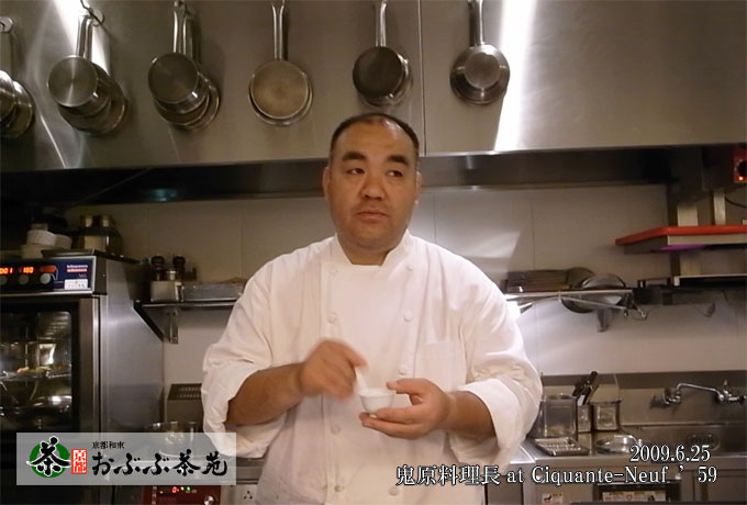 この日は、銀座にあるフレンチレストラン サンカント・ヌフ’59にて、鬼原(きばら)料理長に和束(わづか)茶を試飲していただきました。