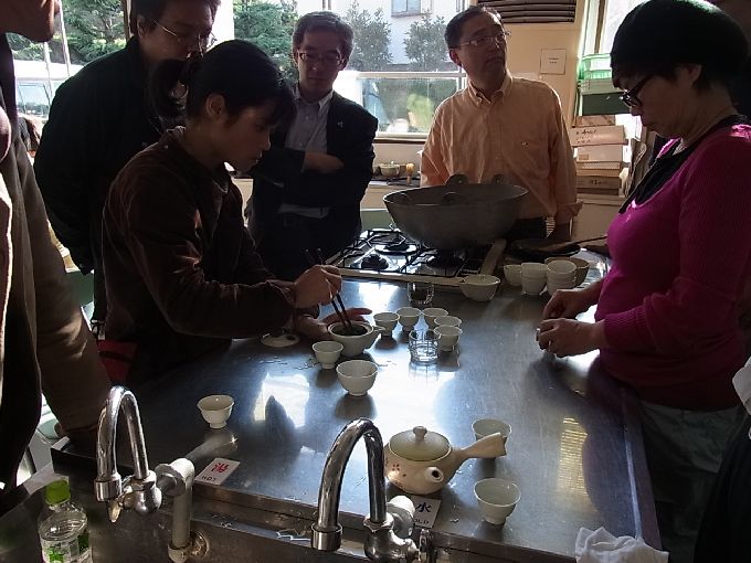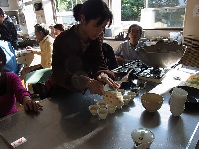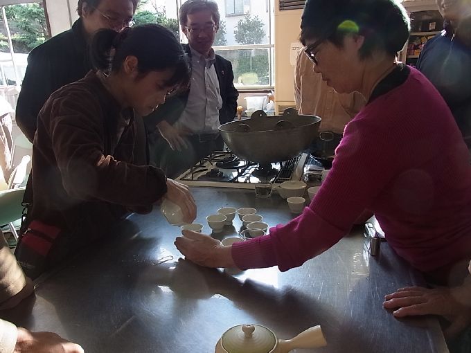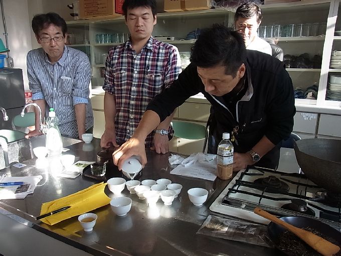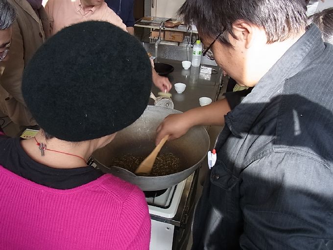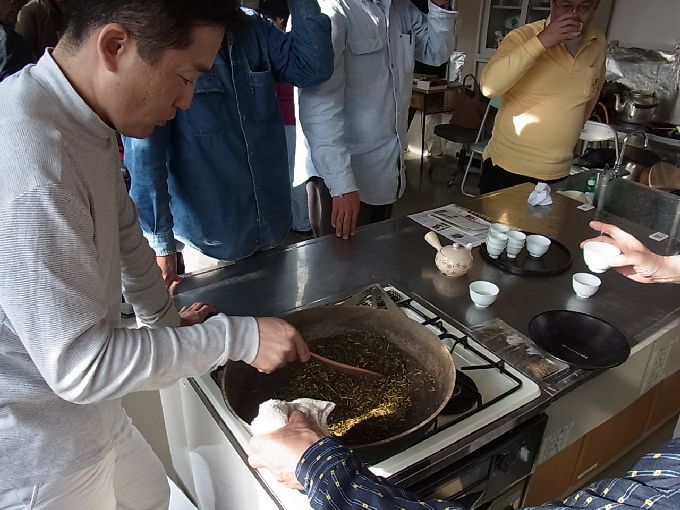 実際にほうじ茶の焙煎、抹茶の石臼挽き、おいしいお茶の入れ方などを体験していただきました。