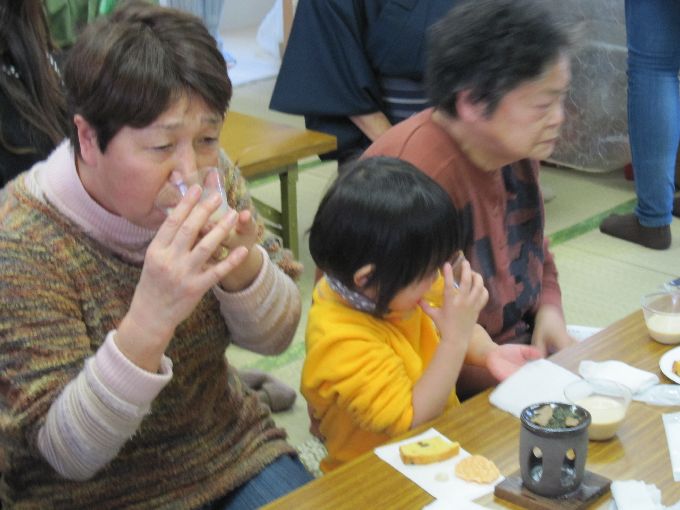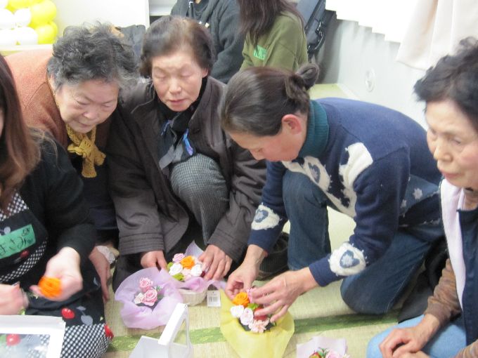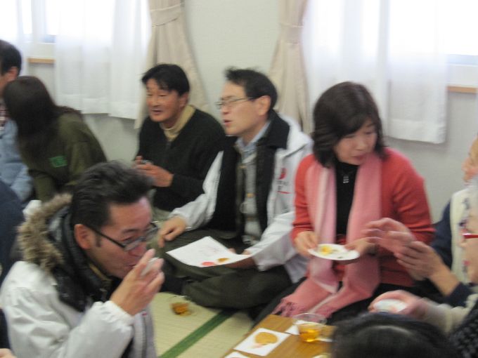 目的:サン・ファン館集会場にてお茶会を開催し、仮設住宅及びその周辺に住んでおられる方々に楽しんでほっこりして頂く。