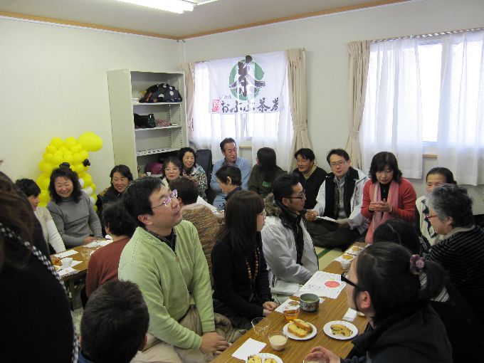 ・仮設住宅やその周辺にお住まいの人たちとおぶぶ茶苑スタッフやお茶会に賛同して集まった人たちと歓談する。