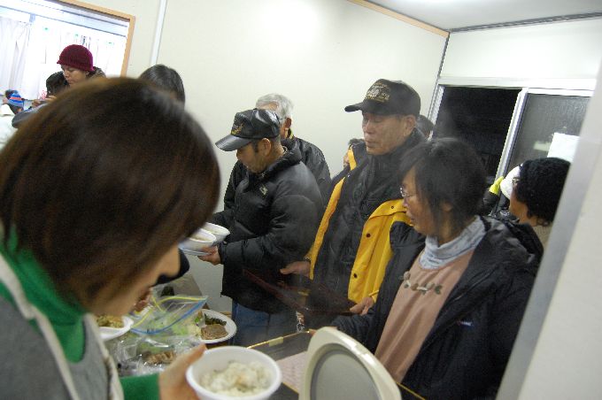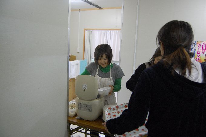 この雄勝町の方がお住まいの飯野川高校仮設住宅にて、ご当地炊き出しを行ないます。