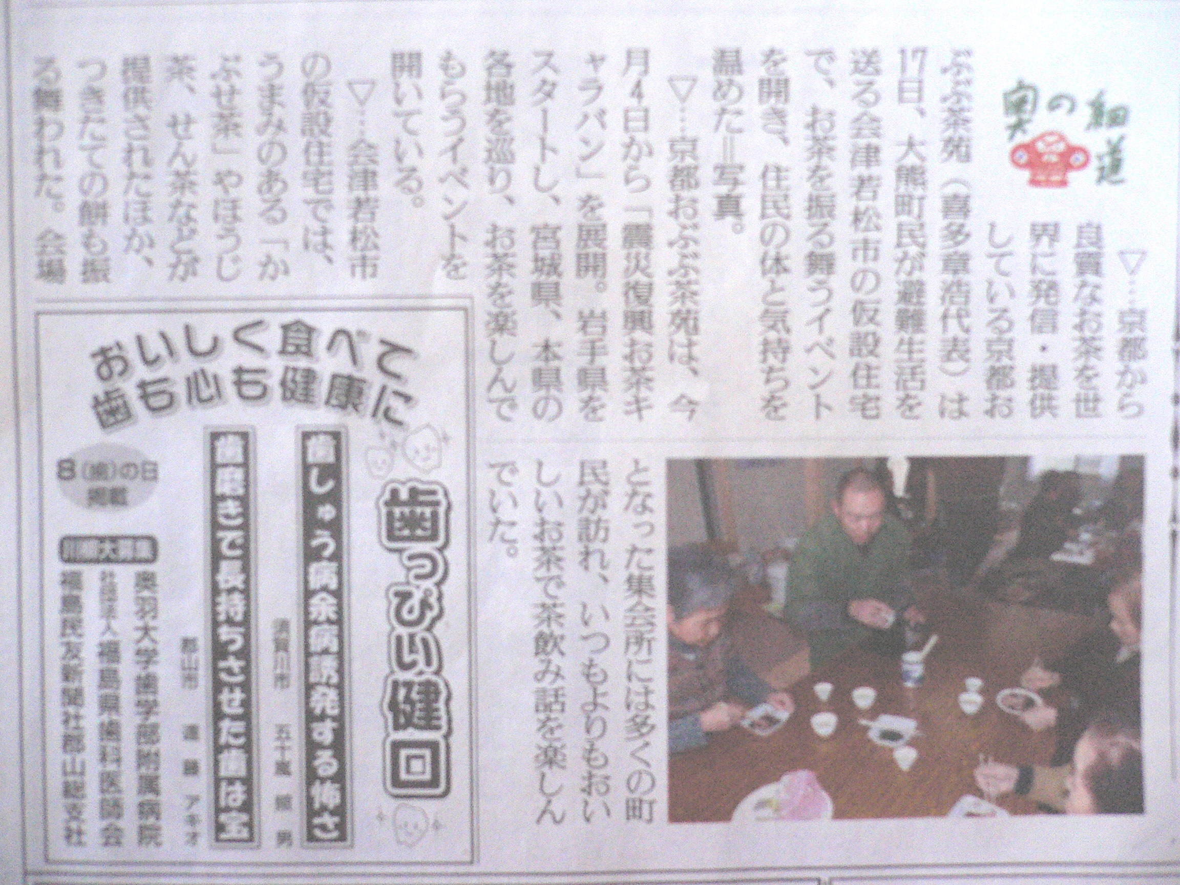 福島民報さまに震災復興お茶キャラバンでの取り組みについてご掲載いただきました。