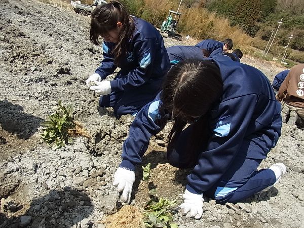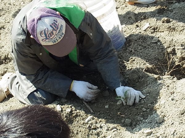 風が強く、寒い中、みんな心を込めて苗木の植林をしてくれました。