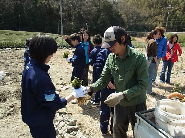 イベント,  中学生による茶苗の植林体験,  地元小中学生の植林体験,  植林体験,  茶畑からの社会貢献