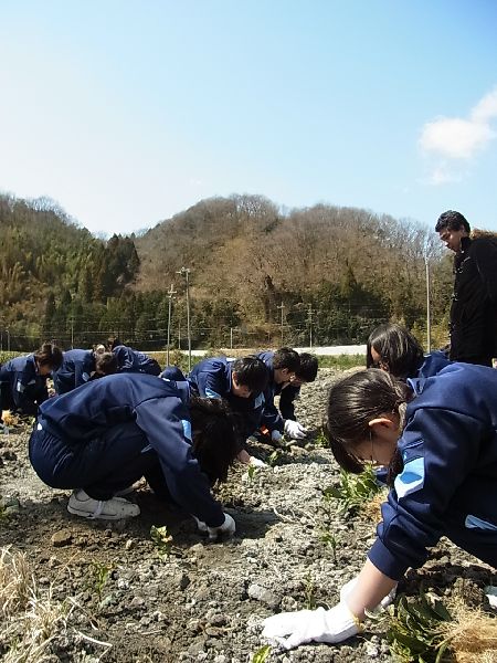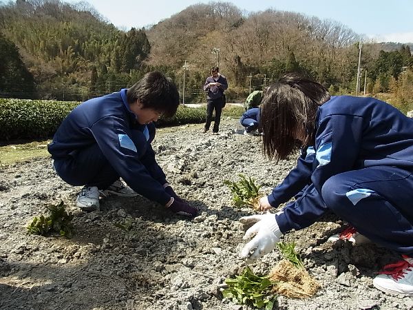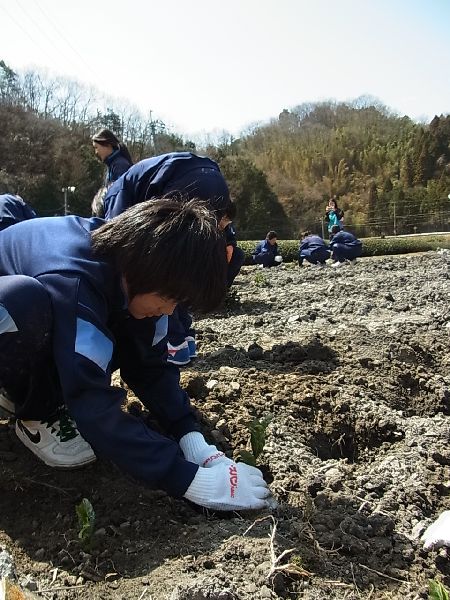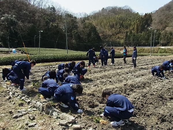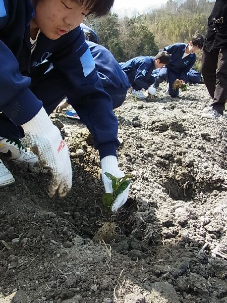 2012年3月21日(水)、おぶぶがある和束町の地元の中学校の生徒さんたちと「茶苗の植林体験」を行いました。