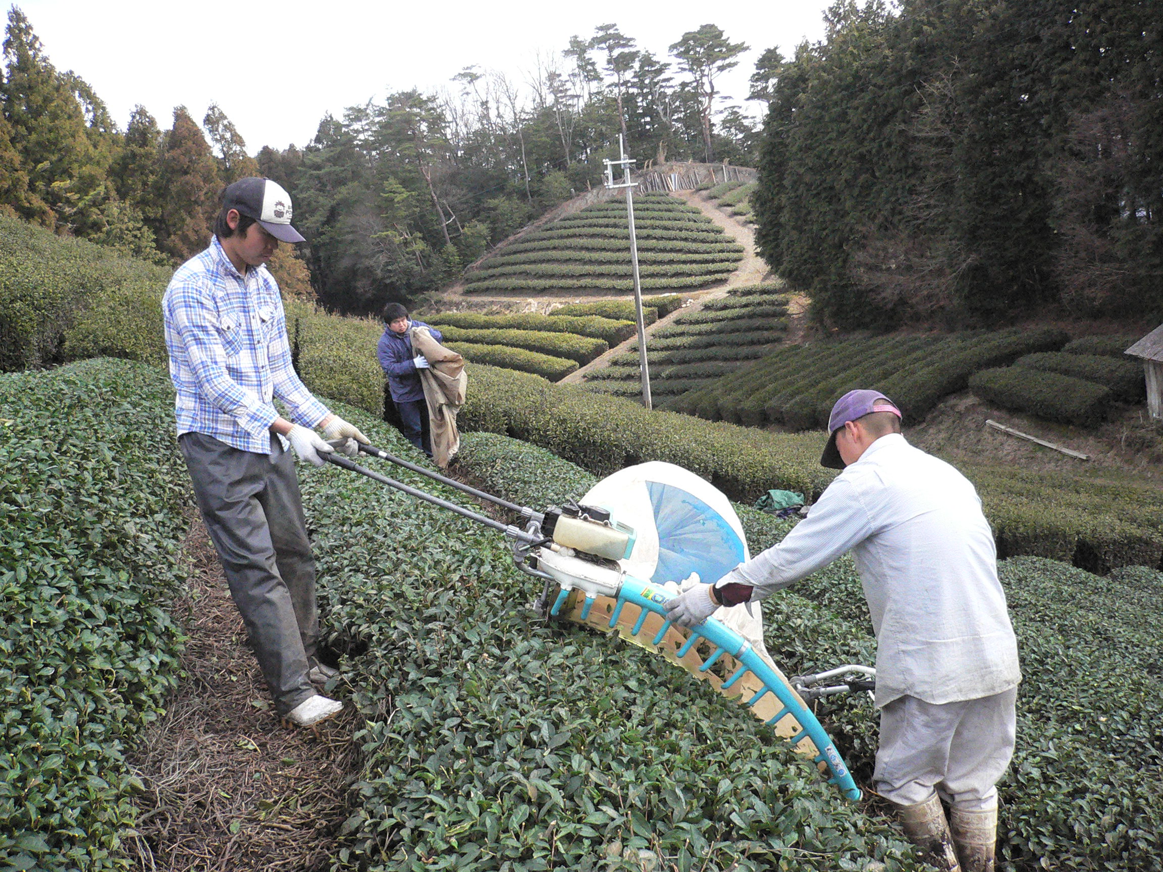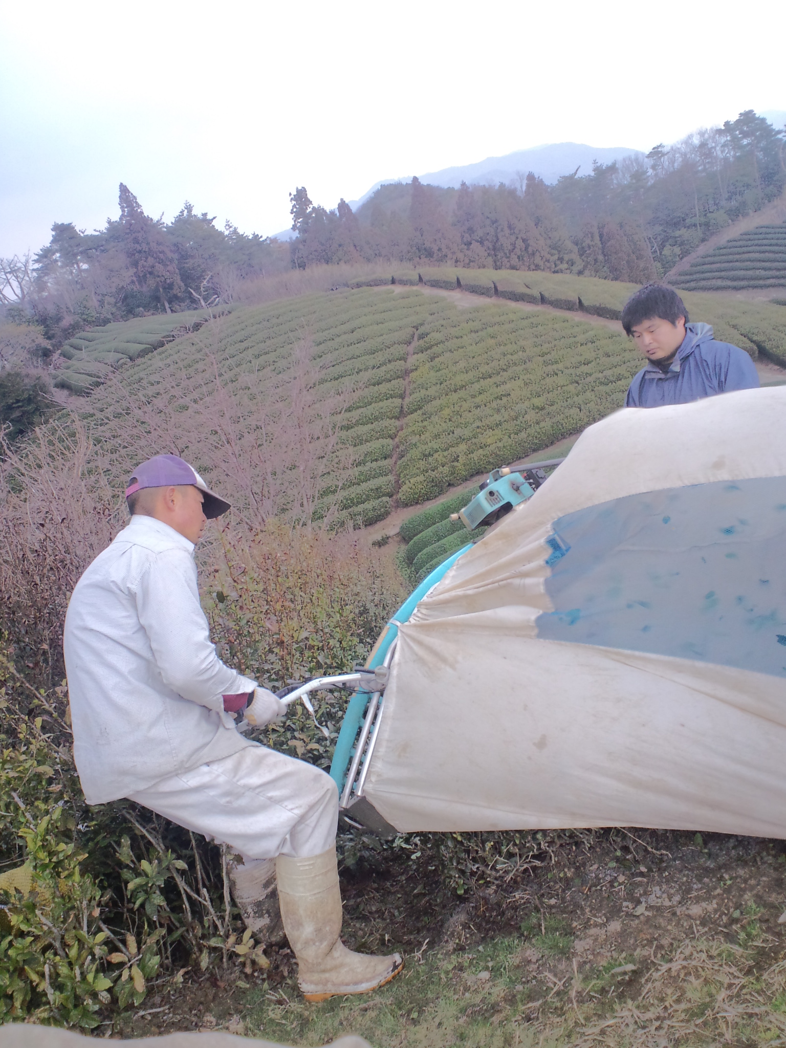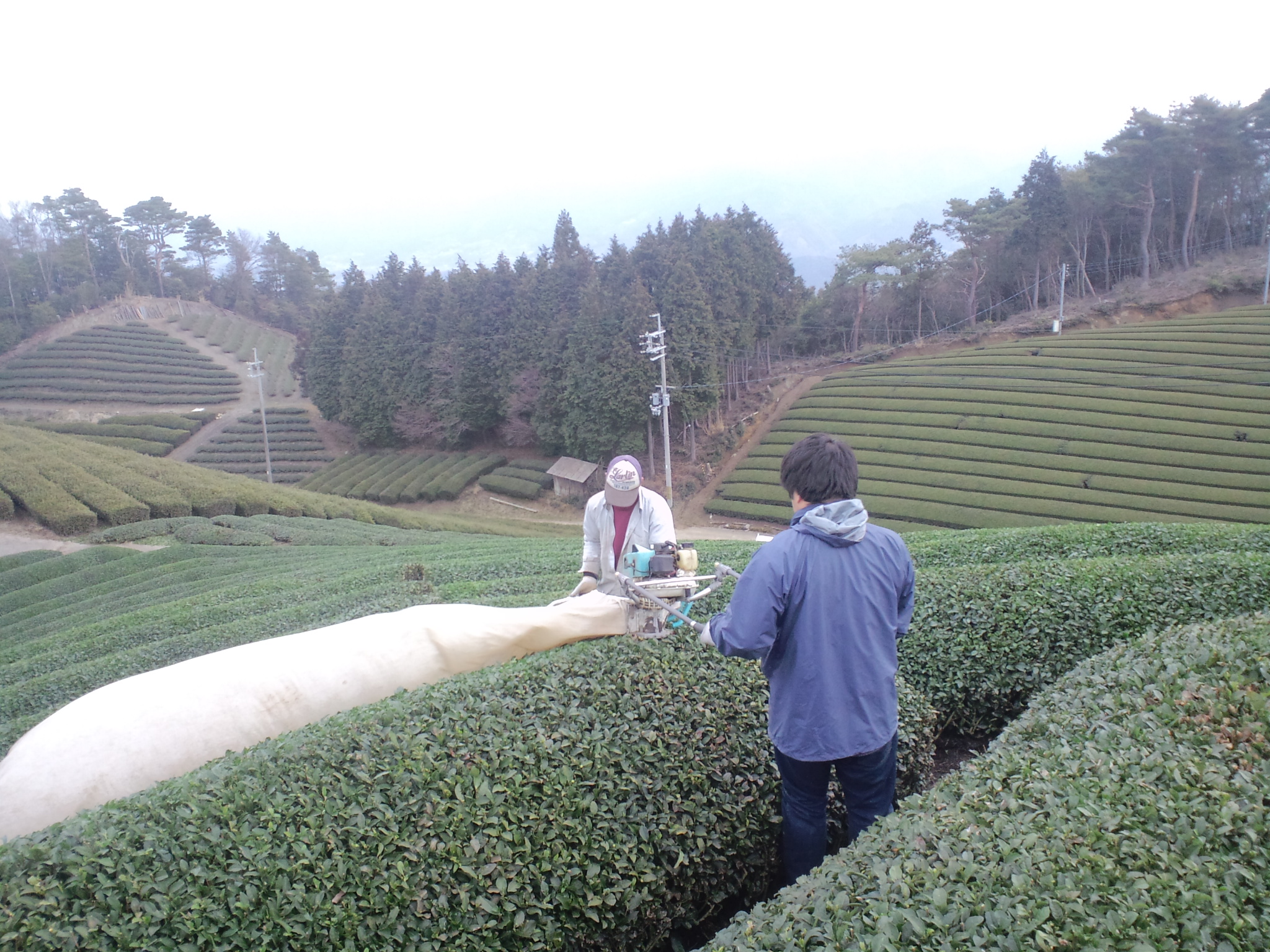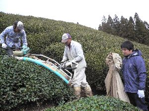 天空の茶園での番茶刈りのあとは