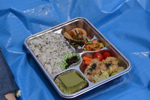 お昼は茶尽くし弁当・生茶葉の天ぷら・生茶葉入りおすまし