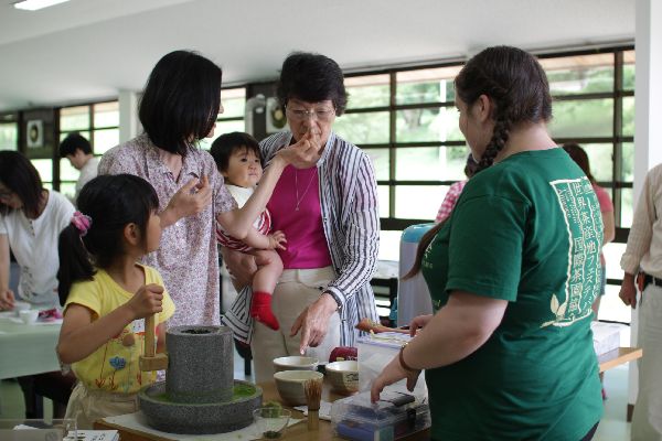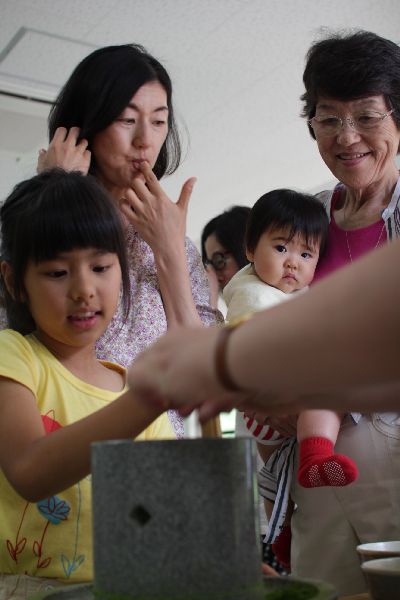 抹茶の石臼挽き、ほうじ茶作り(ほうろく)も