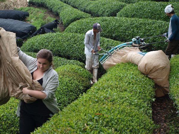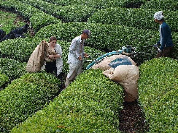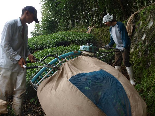刈ったお茶の芽運びを手伝いにきてくれました。