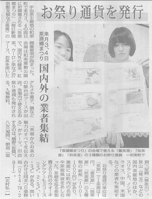 毎日新聞さまに11/3(土)4(日)開催の「茶源郷まつり」で使用する、