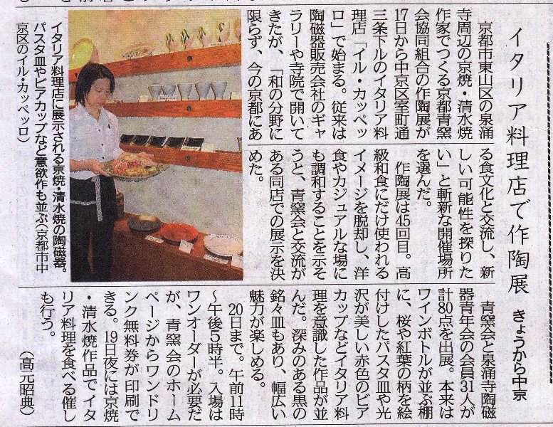 第45回 青窯会作陶展(京都新聞掲載記事)