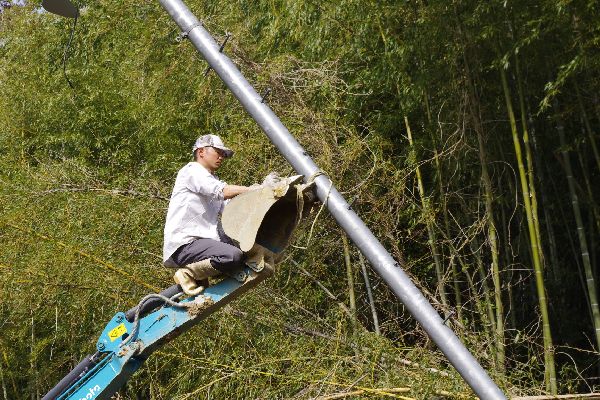 上の写真のように二人で扇風機をどうにかこうにか設置しました。