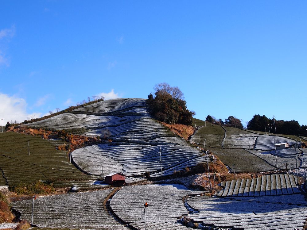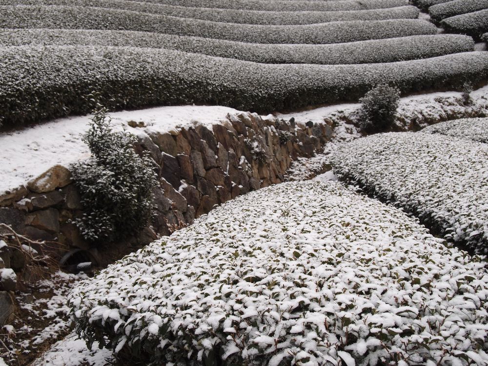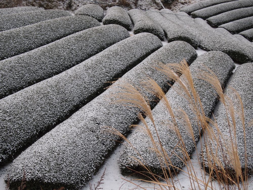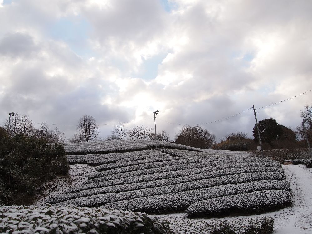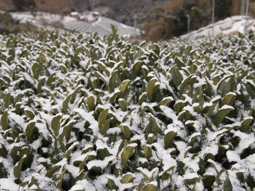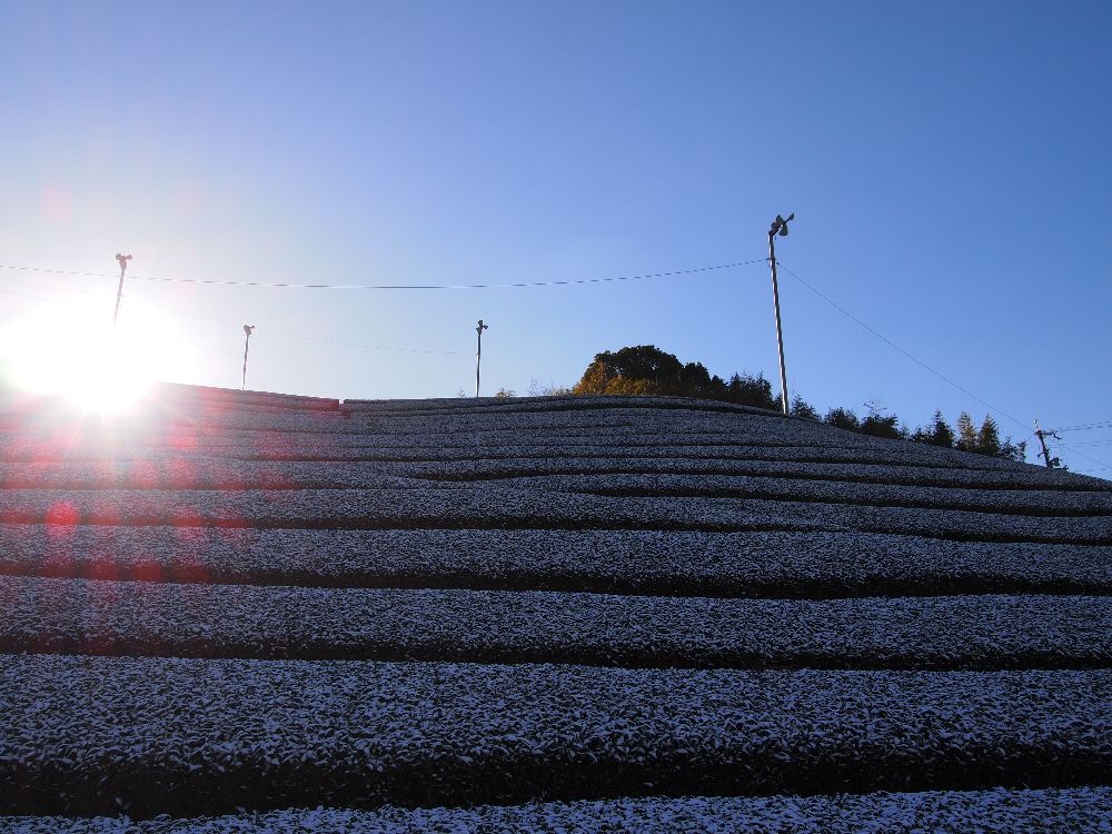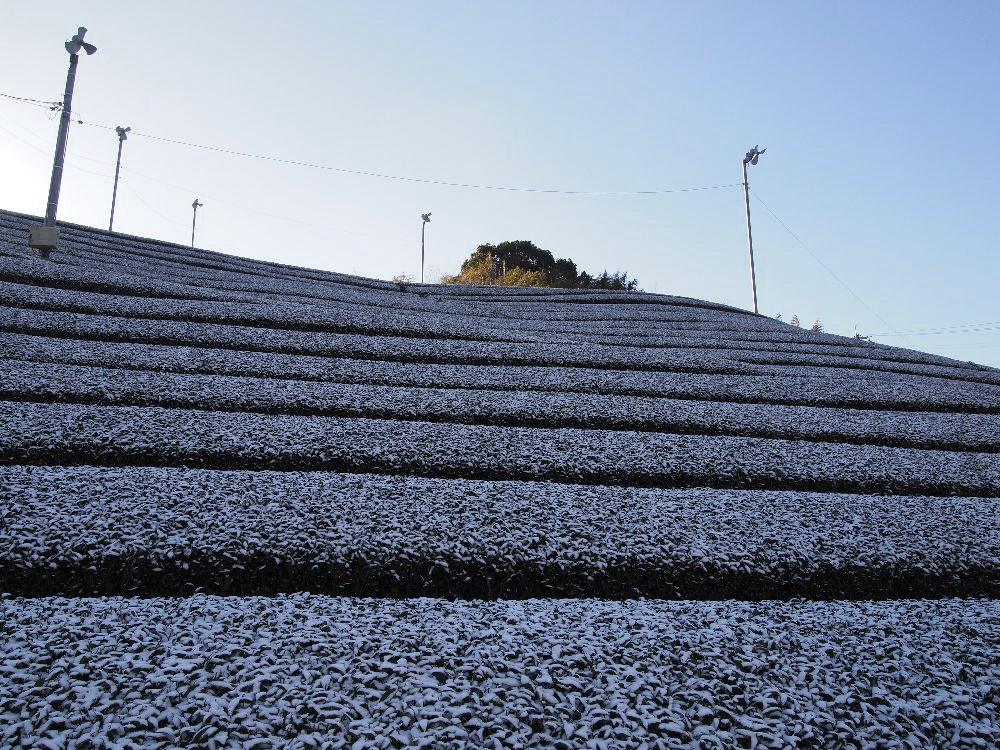 この冬、2回くらい、うっすらですが茶畑に雪がつもりました!