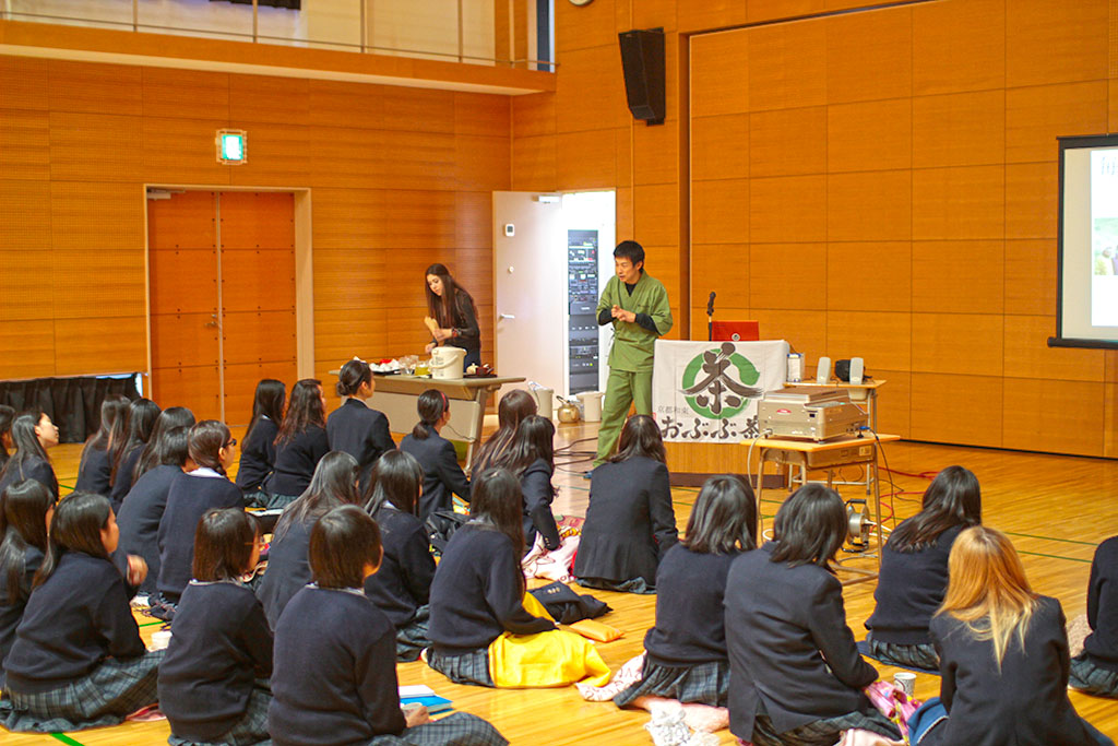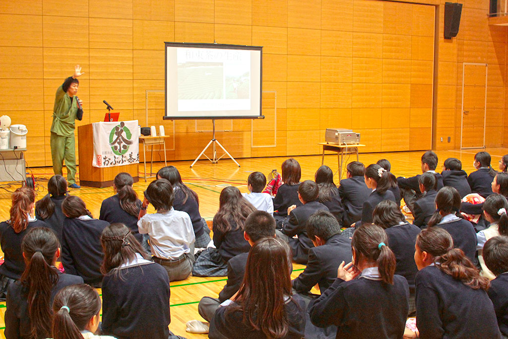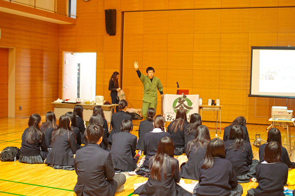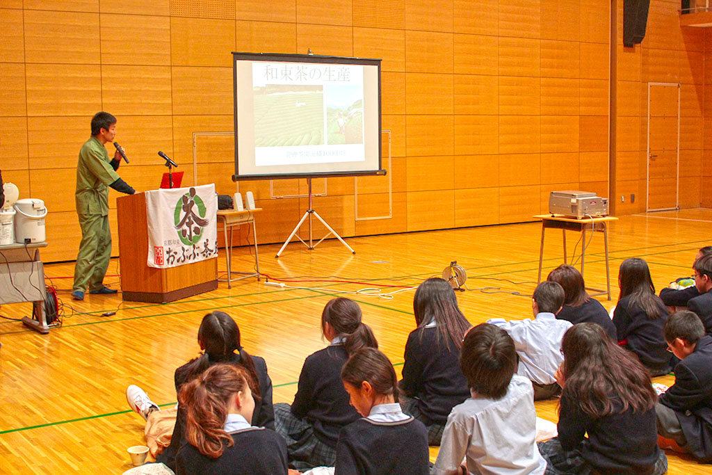 生徒の皆さんにはお話をお聴きいただくとともに、ほうじ茶、かぶせ煎茶、玄米茶の3種類を楽しんでもらいました。
