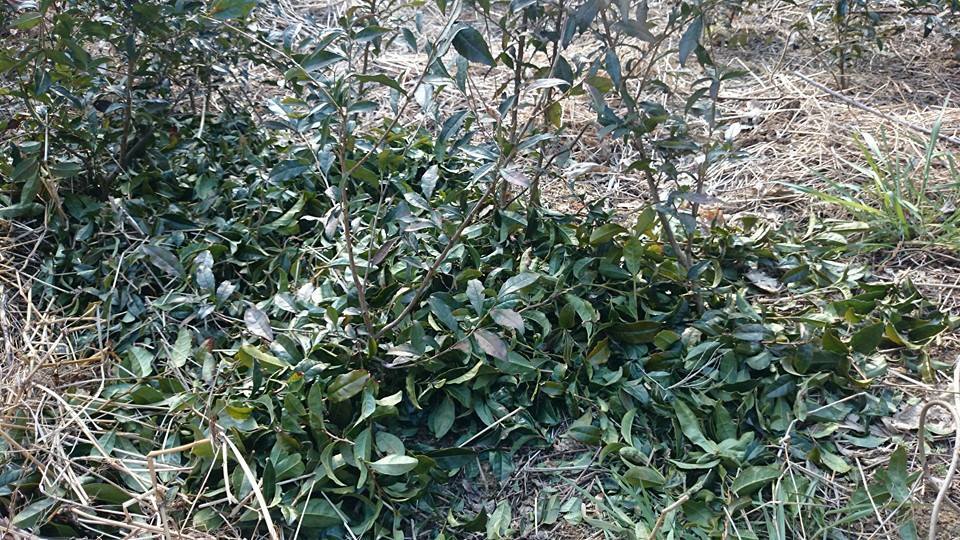 茶の幼木の根元においていきます。