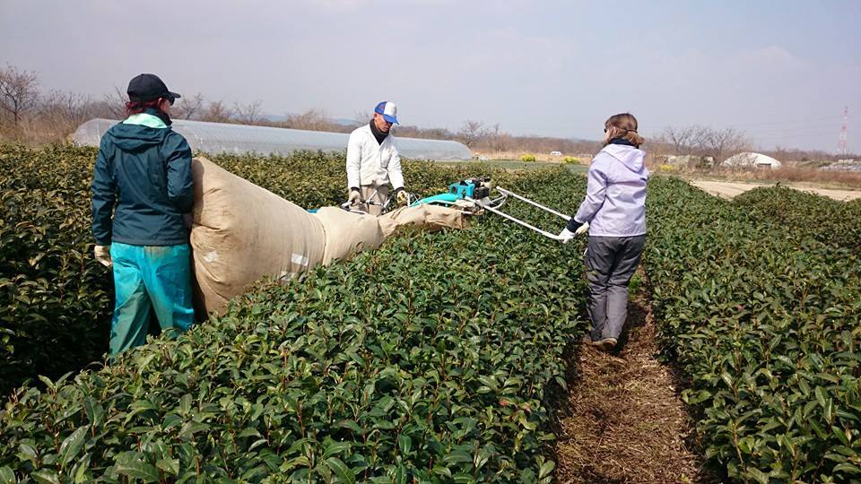 今日はインターン生と一緒にお茶刈りをしています。