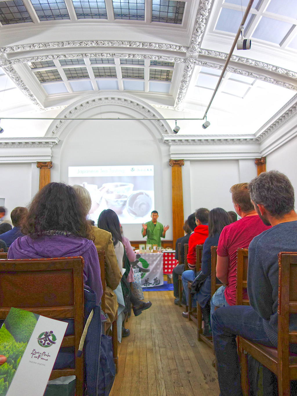 この日は、ロンドン日本協会さまのご協力により、ロンドン・ソーホーの東にあるスウェーデンボルグホールにて日本茶のセミナーを開催いたしました。