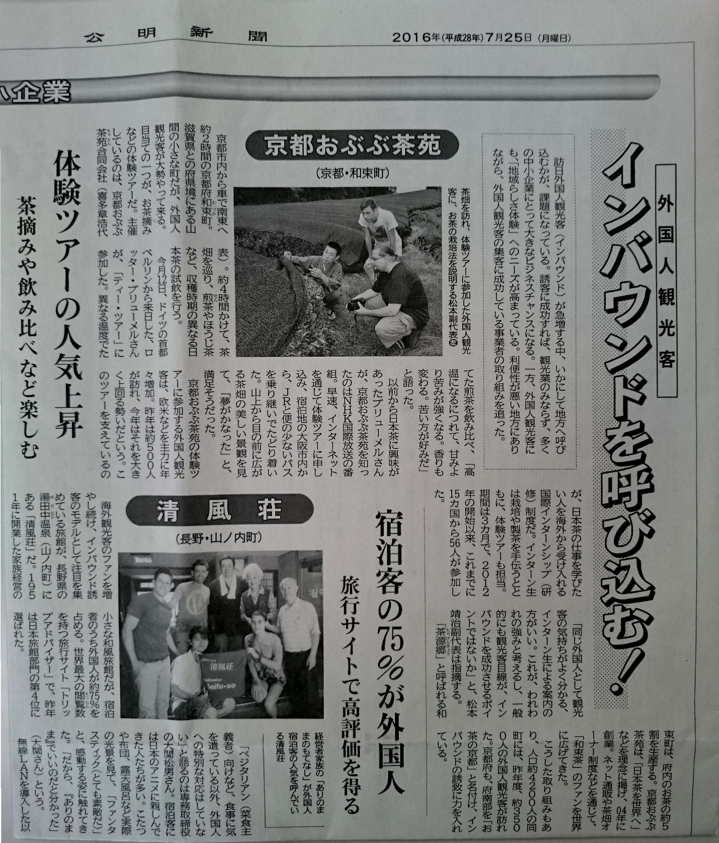 【マスコミ掲載御礼】公明新聞にて「外国人観光客インバウンドを呼び込む!」という見出しで特集して頂きました!