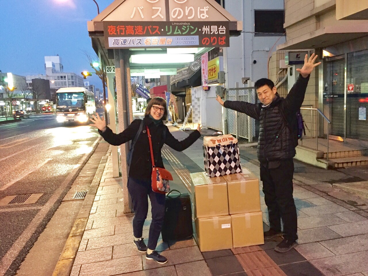 飛行機に乗せることができる最大量23kg×2と10kg×2と手元荷物×2で約70kgくらい。ギリギリまで、お茶やパンフレットを持って行ってくれます。