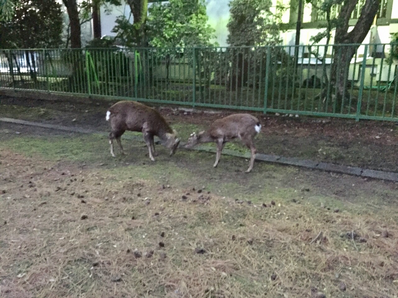 (null)近鉄奈良駅前から、関西空港までの高速バスだったので、すぐ近所に奈良公園があります。鹿さん達も朝のご挨拶中でした。