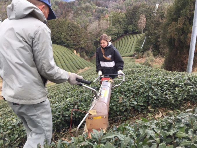 でも、山間の傾斜地にある茶畑でなれていない外国の若者に、大きな刃物がついたバリカンを持ってもらったりしたら危険じゃないの? って思いました?