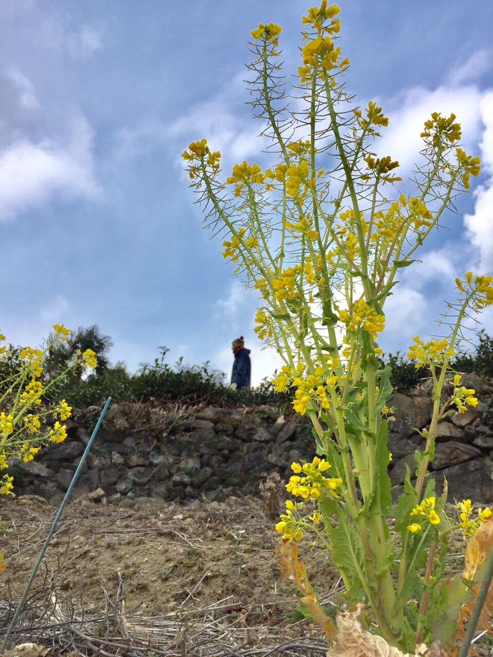 菜の花も綺麗です。奥のトンガリ帽子はインターン生のクレモンです。
