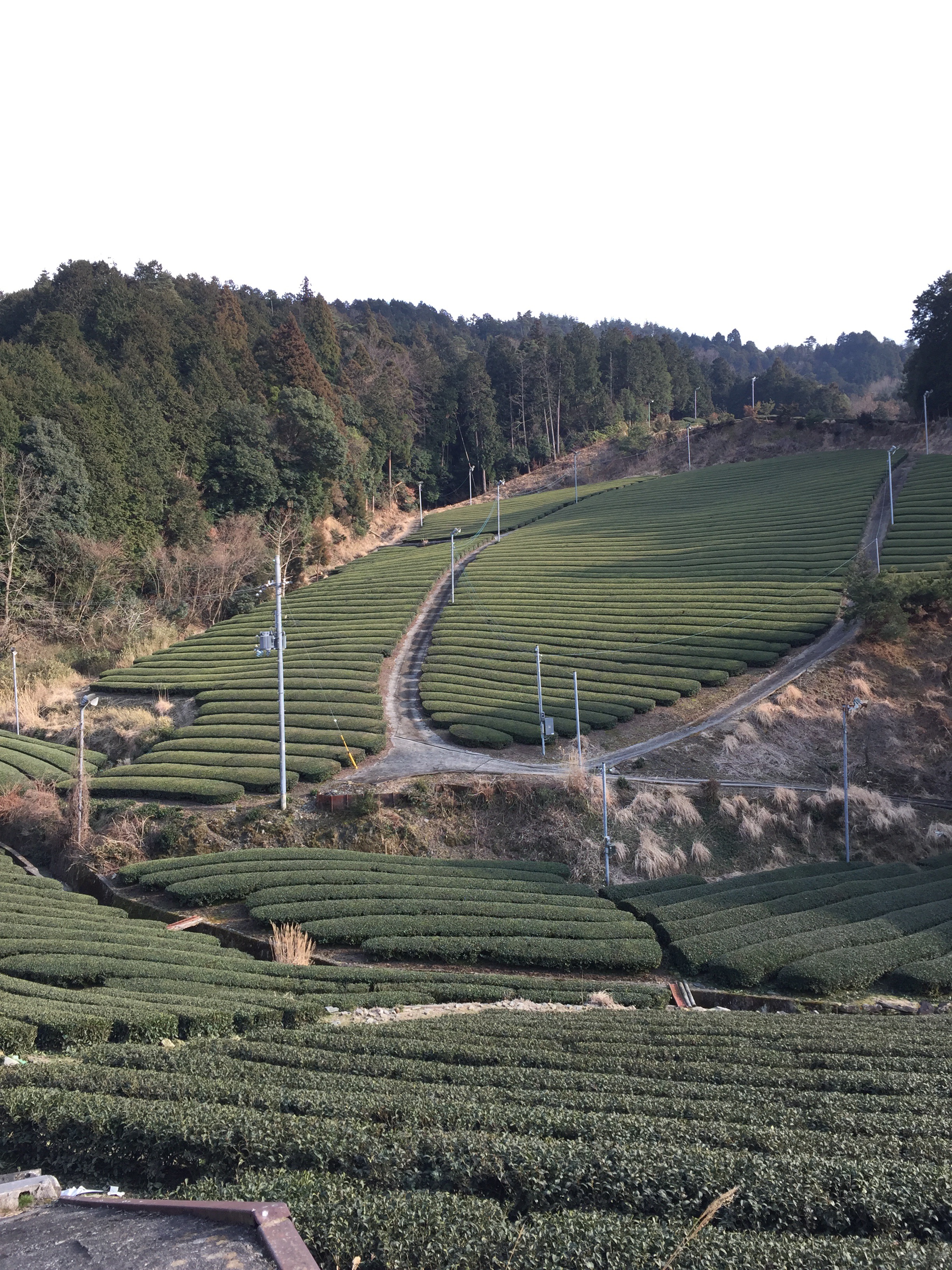 この大杉さんの脇の農道を上がって行くと、茶畑がたくさん広がっています。