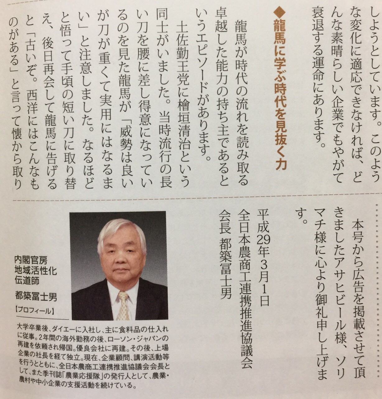 この雑誌は株式会社 農商工連携推進本部が発行している雑誌で、行政系の雑誌なんでしょうかねー