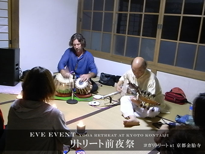 ヨガの一流派である、ヨギックアーツの創始者ダンカン・ウォン先生の2時間にわたるワークショップと、タイ・バーホーさん、スティーブ・オダさんによるコンサートで、リトリートが静かにそして力強く始まりました。