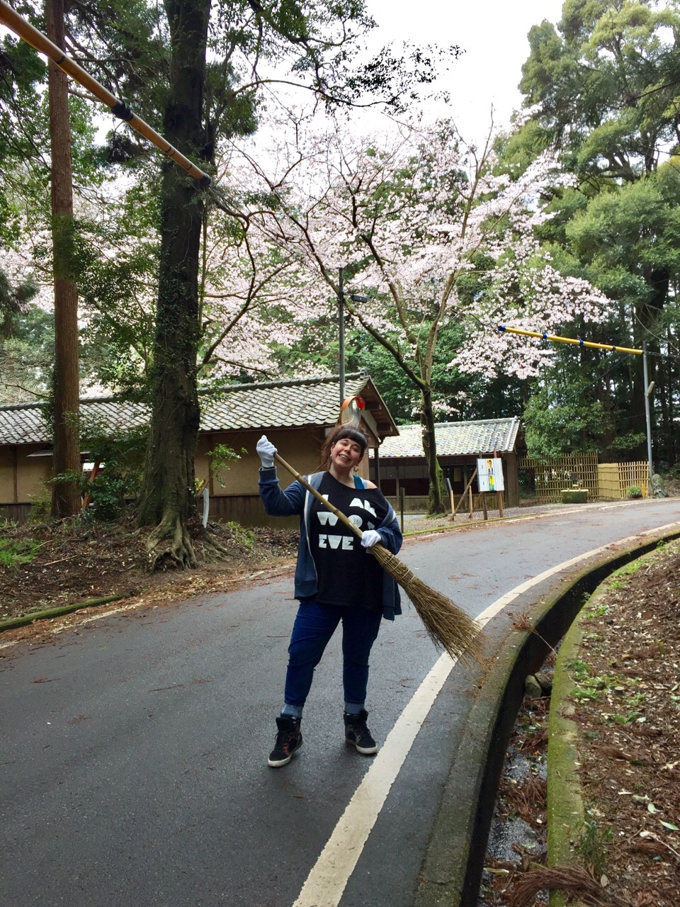 「最近の強い風と雨で、神社の大きな木の枝とか葉っぱが道路に落ちているので、お掃除を一緒にしてね〜」って言ってみたんですが…