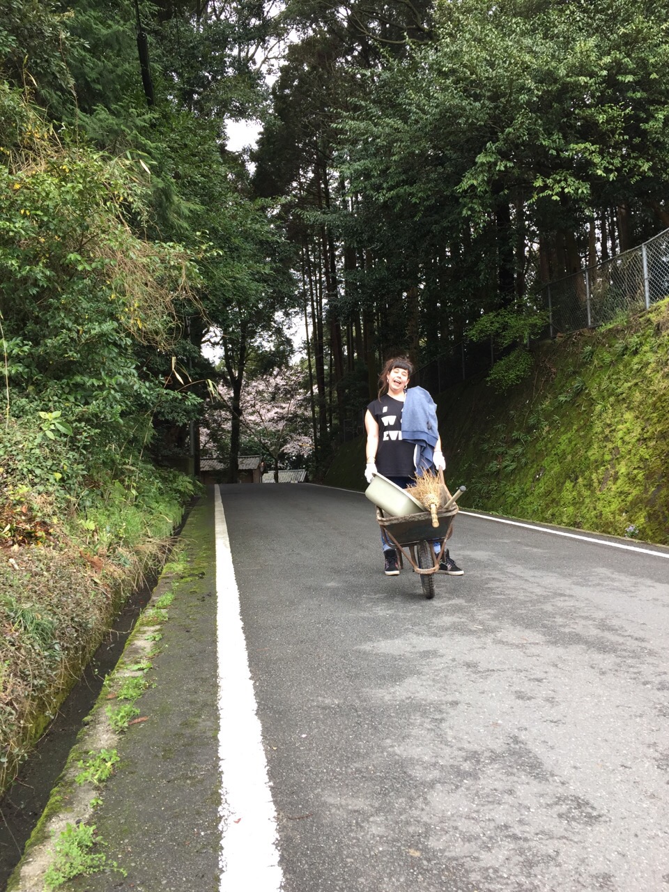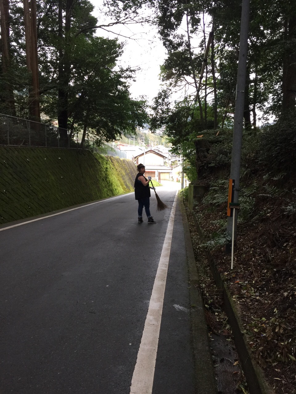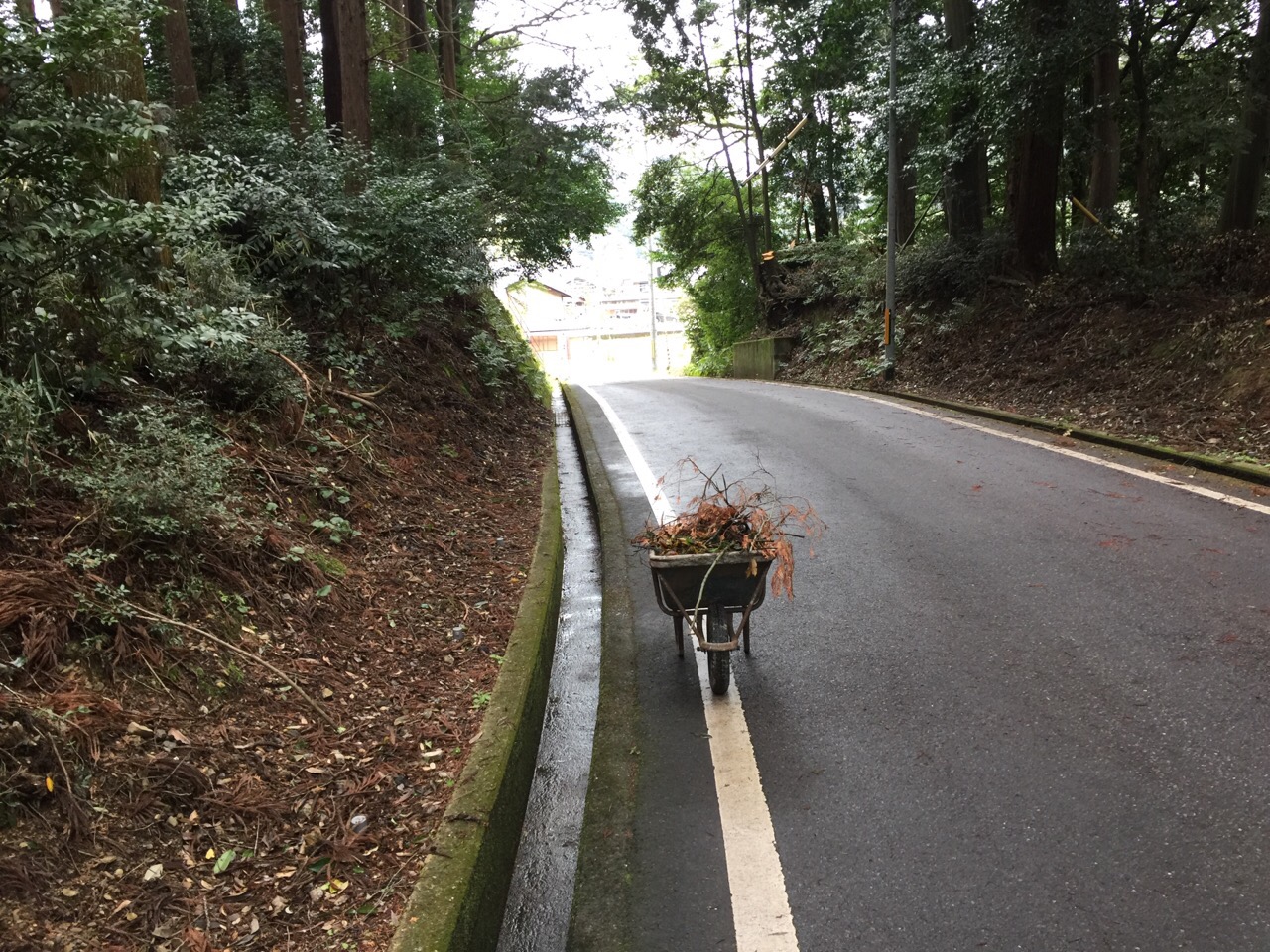 (null)少し前、風と雨が凄くって、近所の和束天満宮さんの大きな木の枝とか葉っぱがたくさん道路に落ちていたので、Kateと掃除してみました。