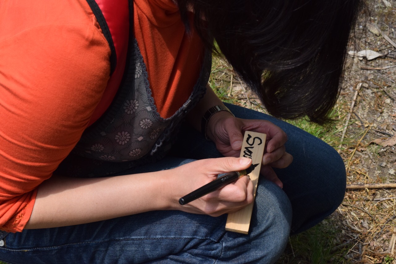 普段はおぶぶスタッフにて書かせていただき芳名板に掲載させてもらっているのですが、お越しいただきました茶畑オーナー様には、ご自身で茶畑に、名前を残していただいております。