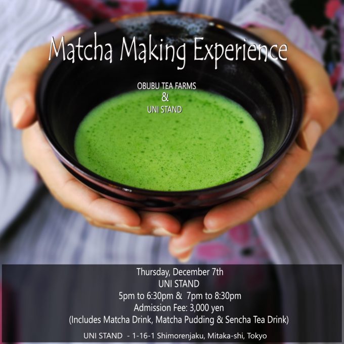 この日は、吉祥寺にあるオシャレな日本茶バーUNI STANDにてMatcha Making Experience イベントを開催させていただきました。