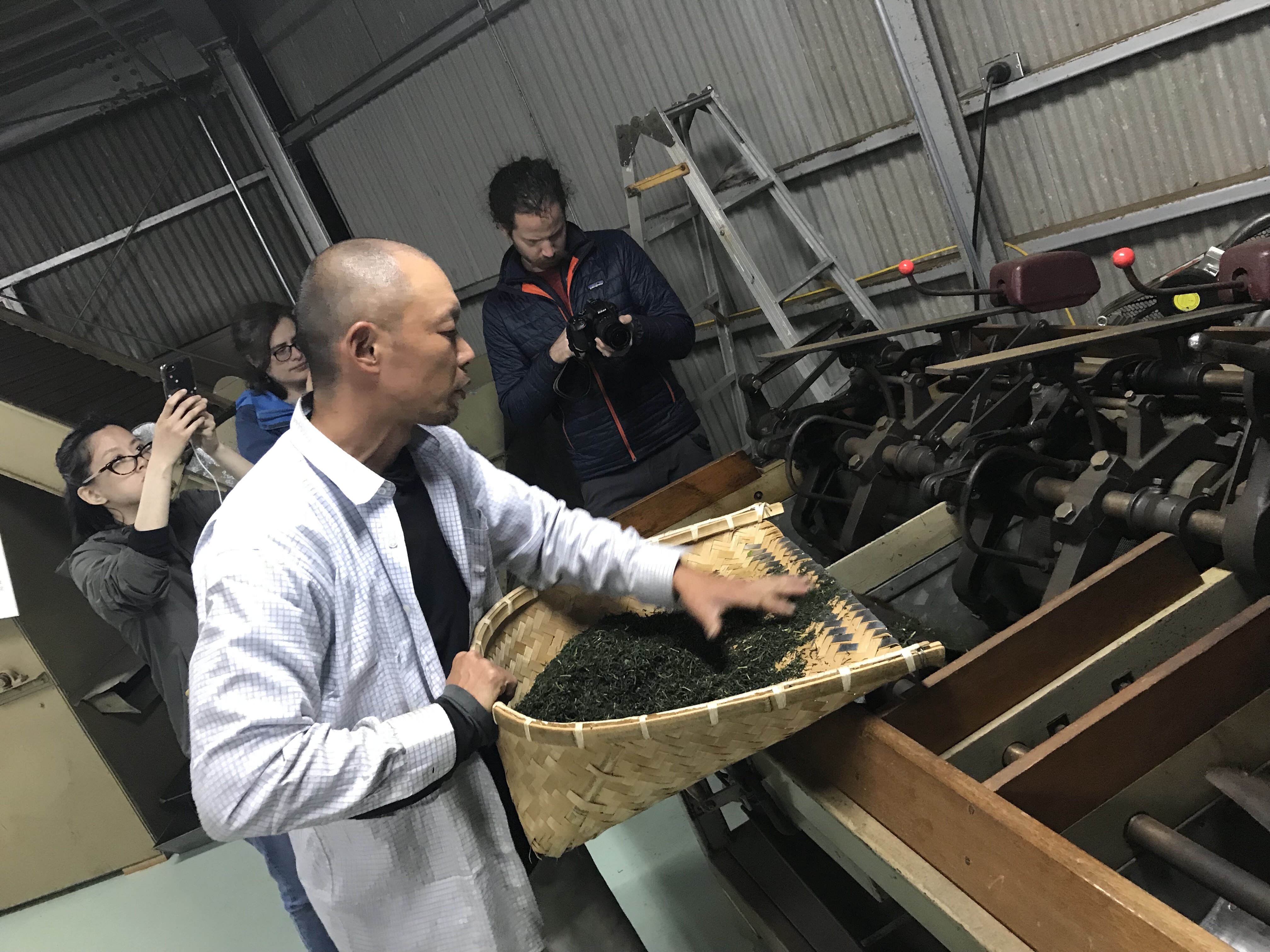 新しい茶工場と言っても、自分たちにとって新しいだけで、建物は築40年以上で、それと同じかそれよりも古い小さな製茶機械がならぶ茶工場。