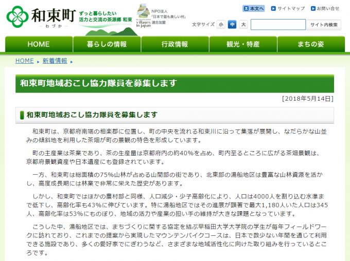 和束町地域おこし協力隊の募集について