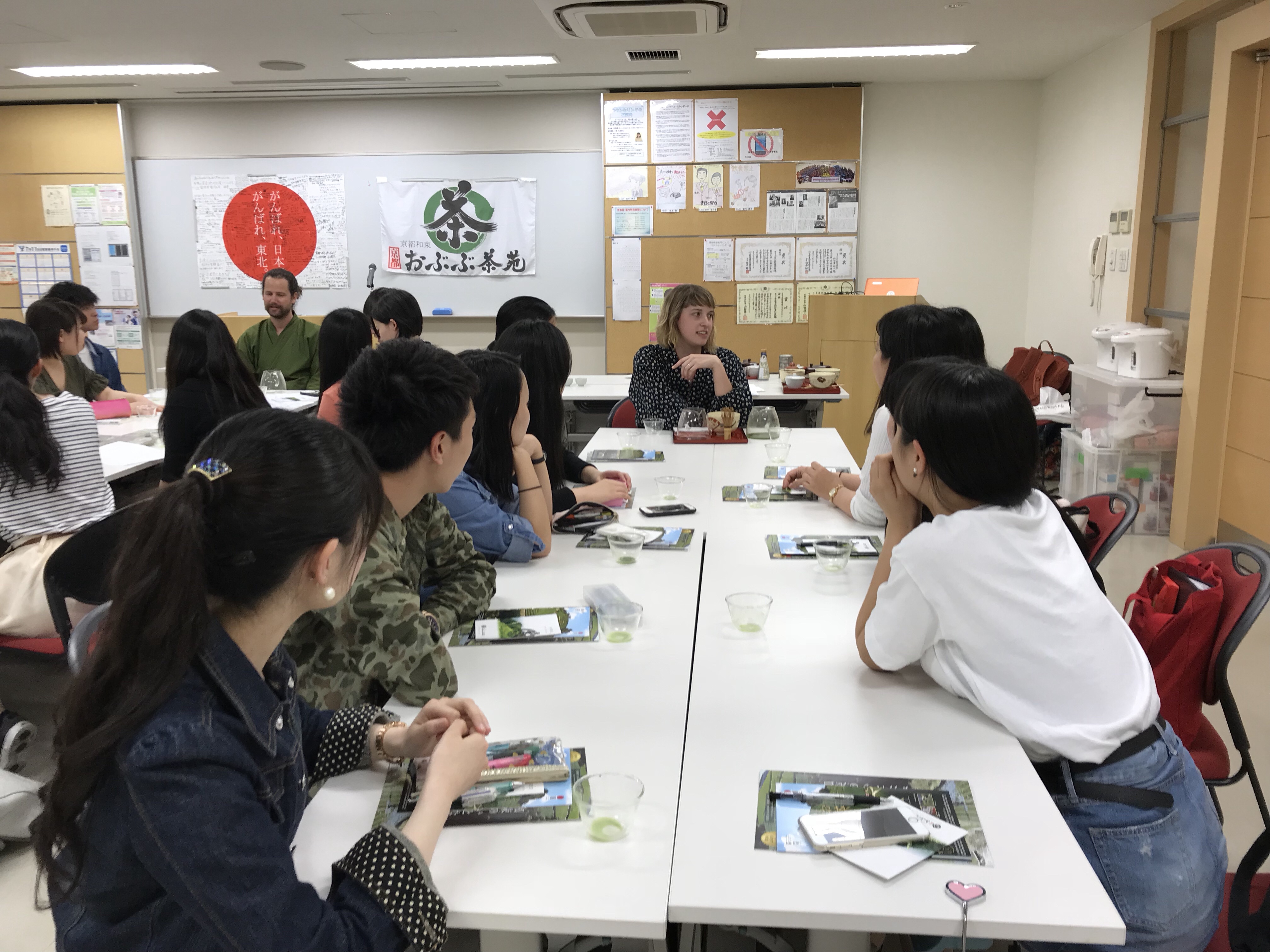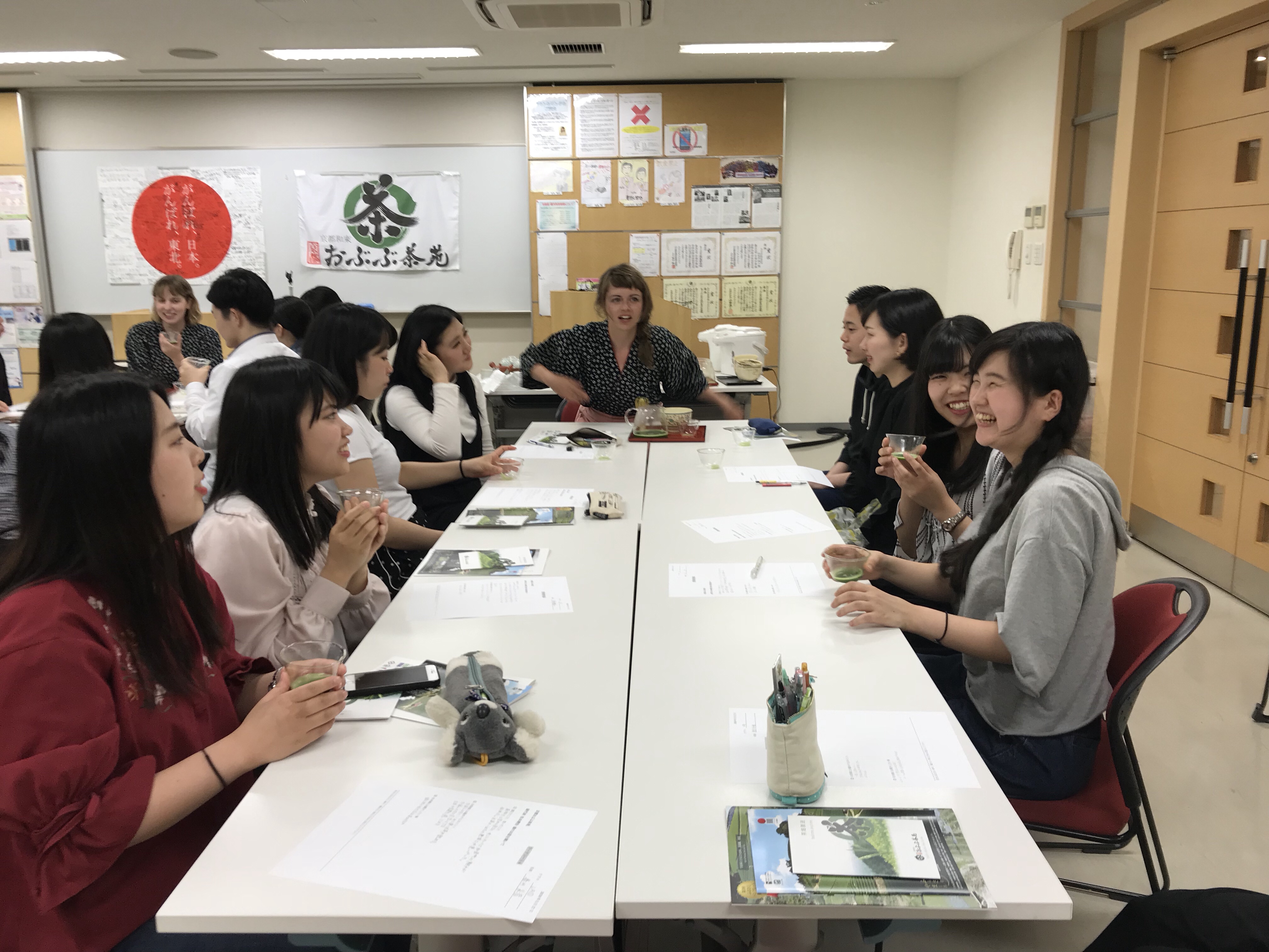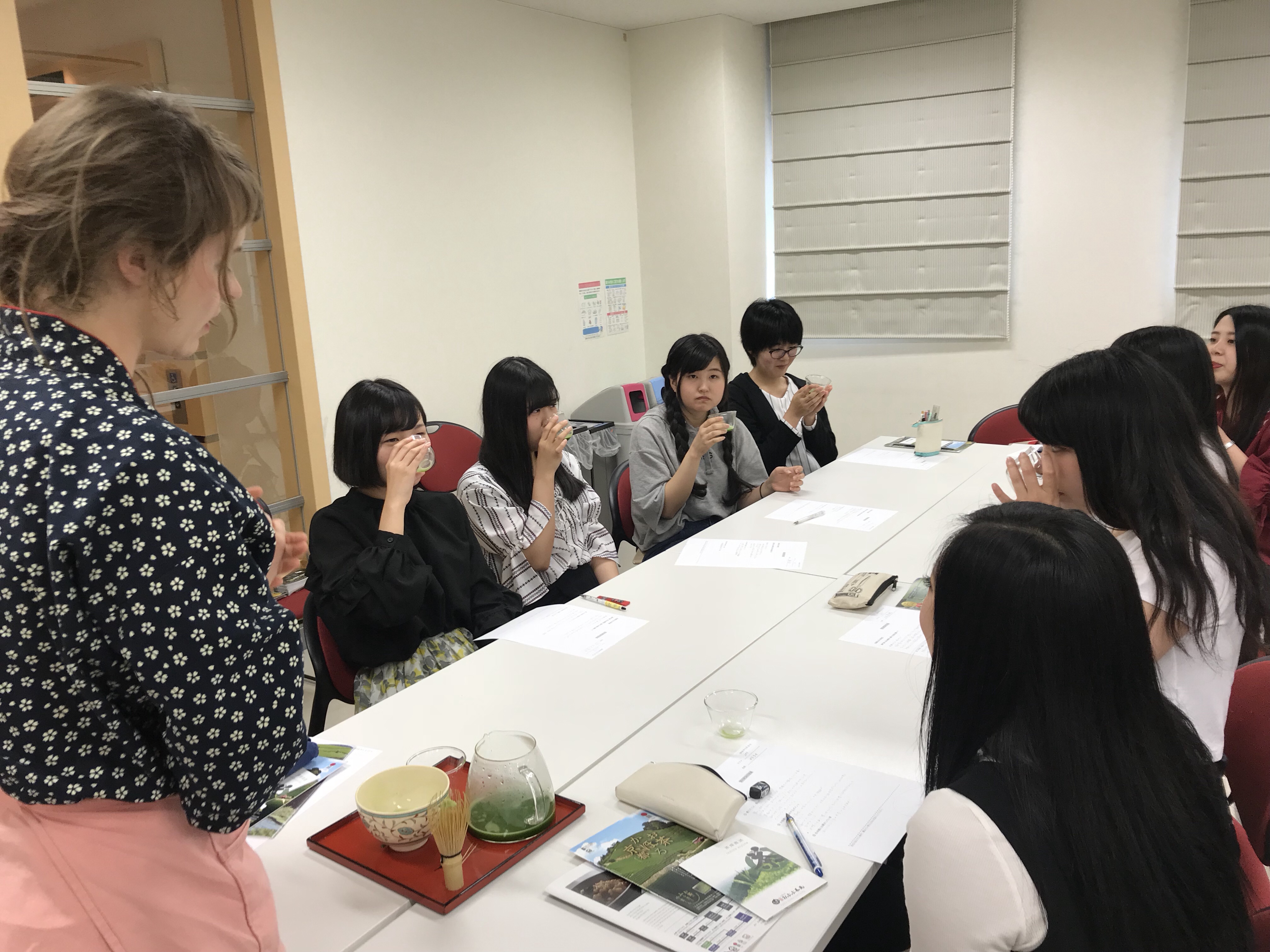 インターン生3名も参加し、授業時間90分の半分は英語。そして4種類のお茶を淹れてくれました。