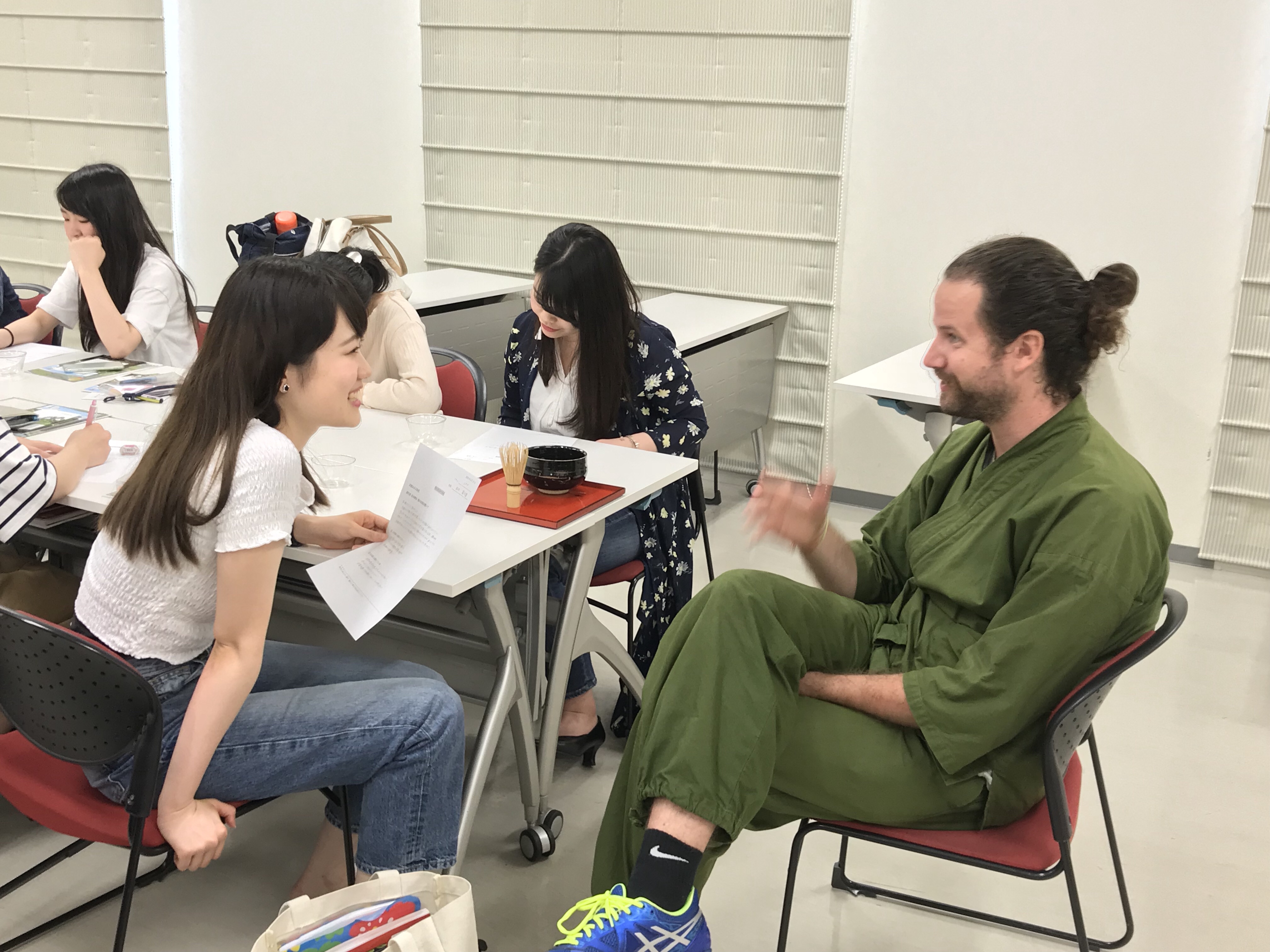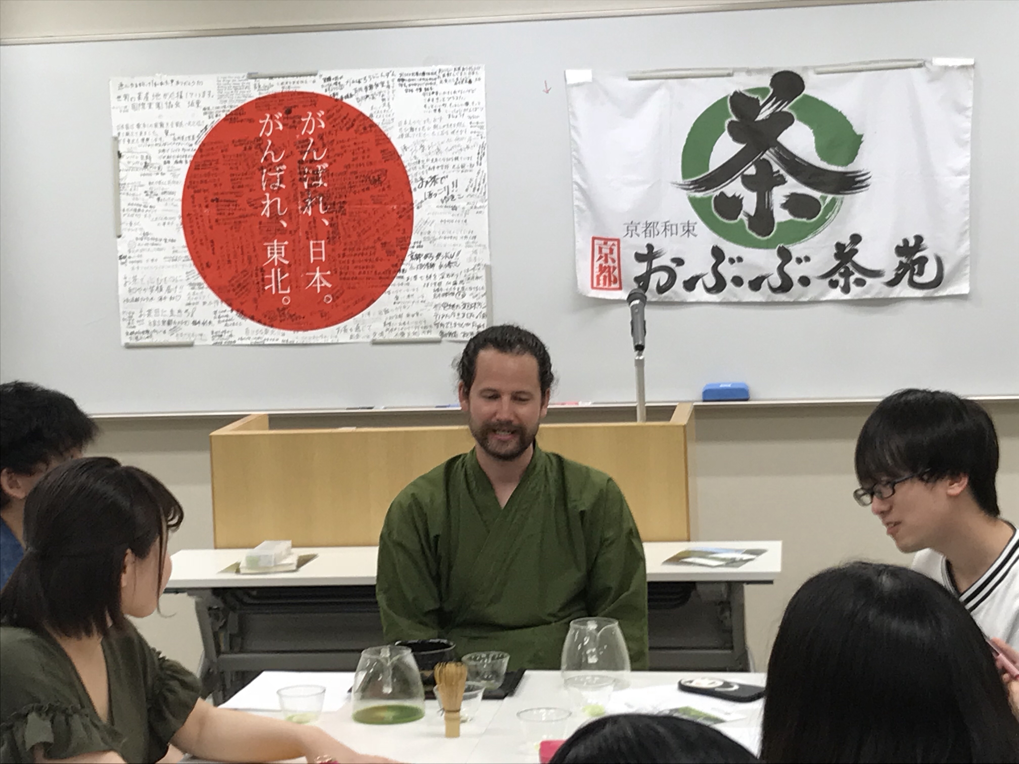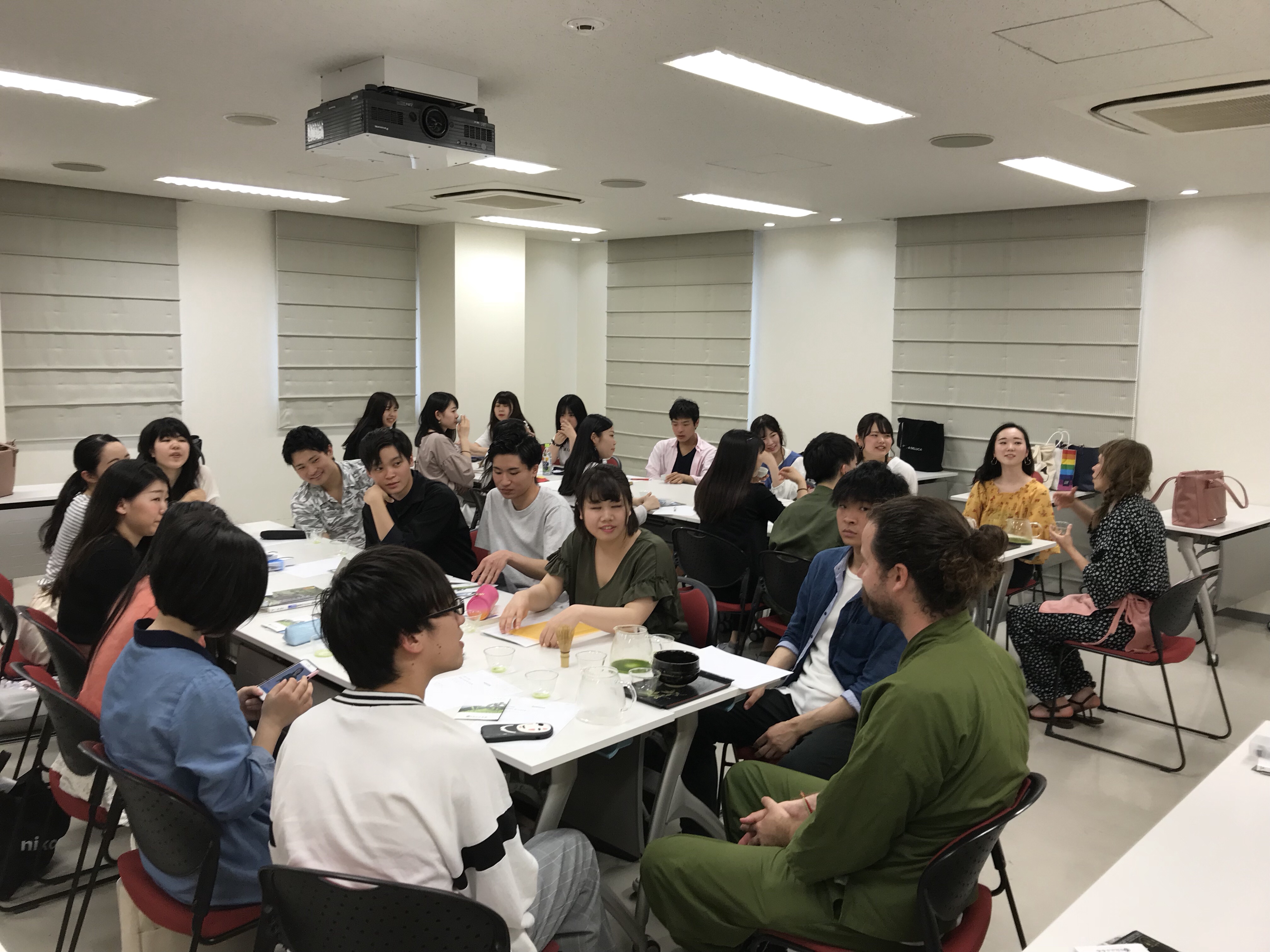 インターン生3名も参加し、授業時間90分の半分は英語。そして4種類のお茶を淹れてくれました。