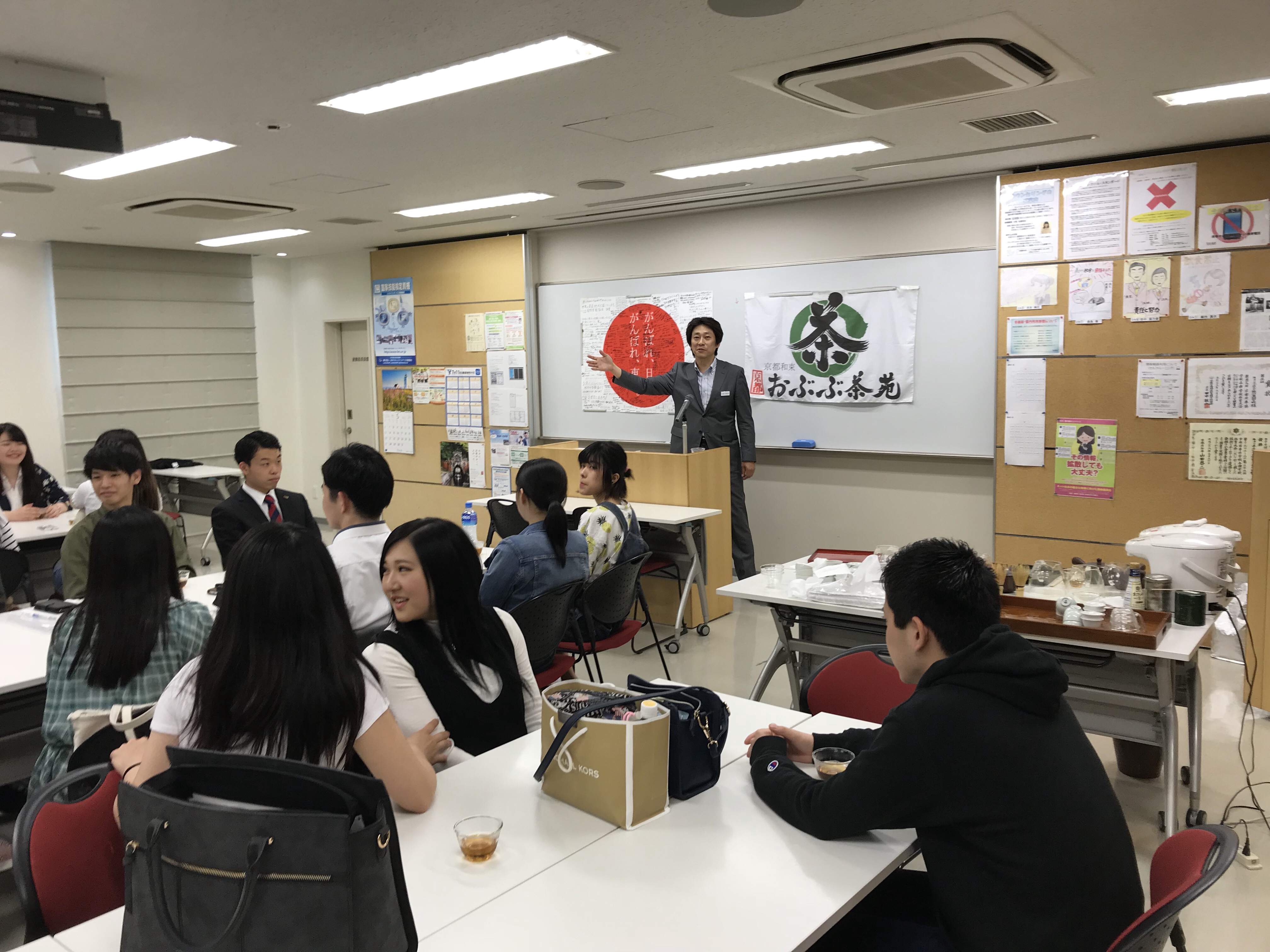 先週木曜日、京都で唯一のホテル・旅行・ブライダルの専門学校「キャリエールホテル旅行専門学校」さまにて、日本茶セミナーをさせていただきました。