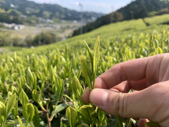 在来種の持つ力強い味わいが特徴的な春のどれの煎茶です!この煎茶は、標高540mの天空の茶畑から収穫された茶葉で作ります。