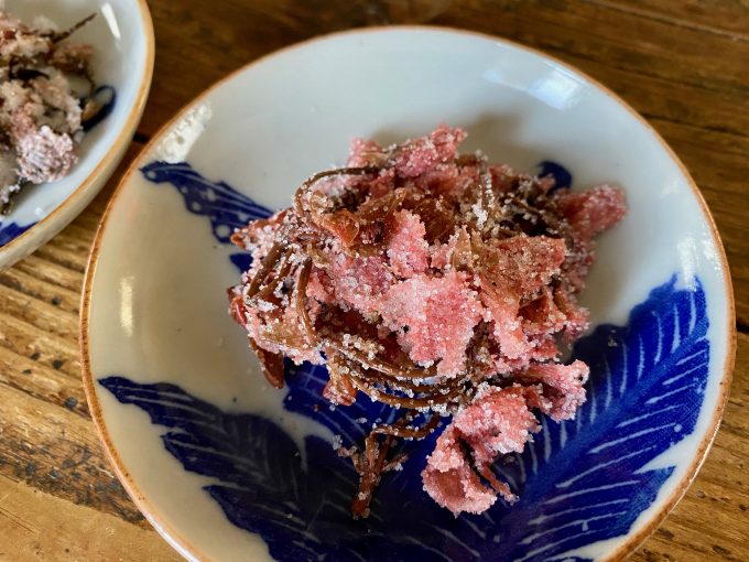 古式製法の塩漬けの桜茶と2年前に完成したあまい桜茶はおぶぶの人気商品になっています。