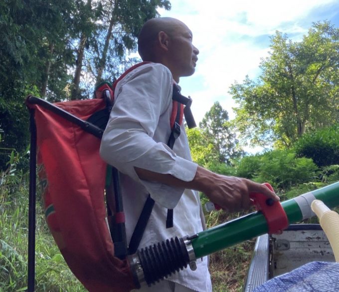 出る量を調節しながら畝間を歩きます〜ただひたすらに!