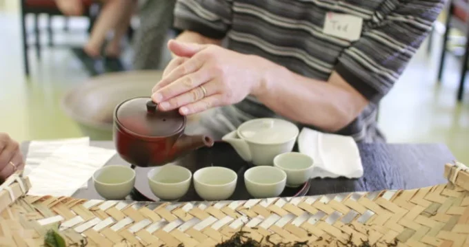 最後にご紹介する「急須」は、ティーポットの日本版です。しかし、日本の急須は少し特殊です。西洋や中国のティーポットによく見られる丸い取っ手ではなく、横に伸びた取っ手がついていることが多いのです。そのため、親指で蓋を押さえながら手首を回転せるだけで、片手で簡単に注ぐことができるのです。小さなカップを一度に注げるので便利です。また、宝瓶のように茶葉をこすための網や穴が付いています。