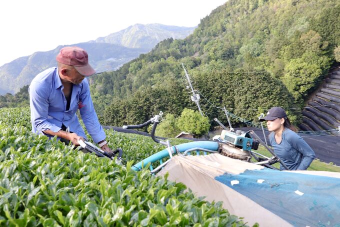 5月に入ってからは、かぶせ煎茶や太陽の煎茶(春)の収穫も同時並行で行われています。