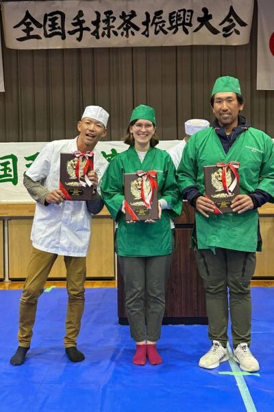 チームのメンバーは、おぶぶ茶苑の代表、喜多章浩さん、細井農園のオーナー細井堅太 さん、国際日本茶協会の会長、鈴木シモナの3人です。
