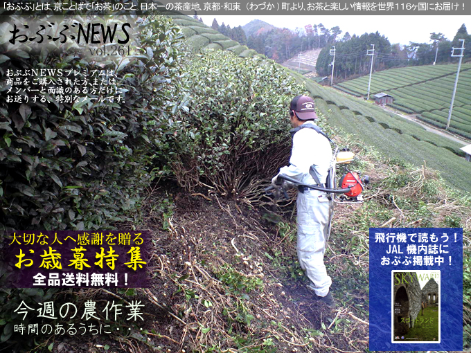 メルマガバックナンバー【おぶぶNEWS】2009 年 5 月 13 日5/13 新茶お届け開始! メルマガバックナンバー【おぶぶNEWS】2009 年 5 月 2 日5/2 本日、八十八夜。 メルマガバックナンバー【おぶぶNEWS】2009 年 4 月 28 日4/28 三連覇!そして、まだ間にあう母の日。 メルマガバックナンバー【おぶぶNEWS】2009 年 4 月 20 日4/20 母の日に贈る言葉