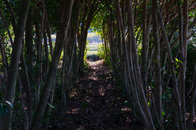 ここのF4茶畑は元々荒廃していた場所だったところ、Jikonkaさんが今は管理をされていてお茶作りもしています。和束でいつもみているお茶の木と比べて葉っぱも幹も太くしっかりしています。お茶の木のトンネルを潜ると、木漏れ日が差し込んでとっても癒されました^^