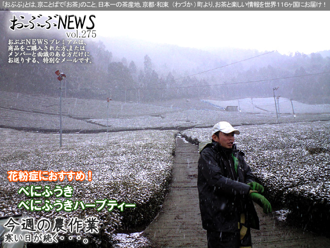 メルマガバックナンバー【おぶぶNEWS】2009 年 5 月 13 日5/13 新茶お届け開始! メルマガバックナンバー【おぶぶNEWS】2009 年 5 月 2 日5/2 本日、八十八夜。 メルマガバックナンバー【おぶぶNEWS】2009 年 4 月 28 日4/28 三連覇!そして、まだ間にあう母の日。 メルマガバックナンバー【おぶぶNEWS】2009 年 4 月 20 日4/20 母の日に贈る言葉