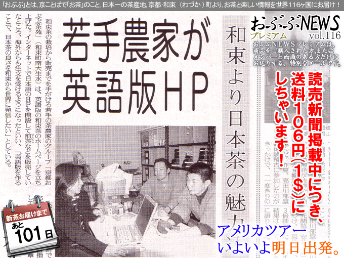 ■本日の表紙:「和束より日本茶の魅力を世界に」~読売新聞より