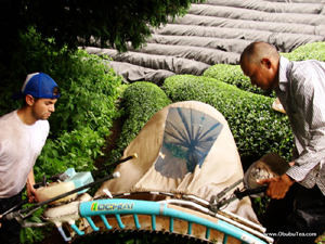 茶刈りは刃を当てる角度とか深度とかができあがりの茶の質を決める大事な要素にもなるんで、難しいんですわ~