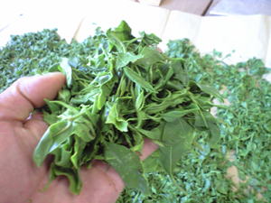 蒸し機から出た蒸したての茶葉を、冷やして冷凍しといたんですわ~